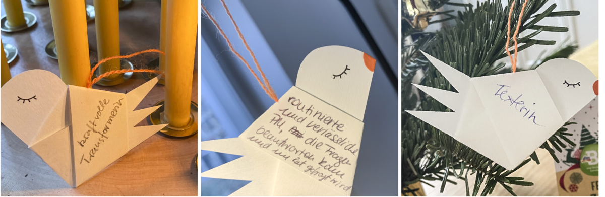 Wir gehen auf eine spannende Reise: Wie gelingt es Adventsstimmung und die Teamkultur im digitalen Kontext weiter zu entwickeln? Die Erwartungen reichen von digitalem Kakao über stimmungsvolle Morgende bis zu Teil eines tollen Experiments zu sein.